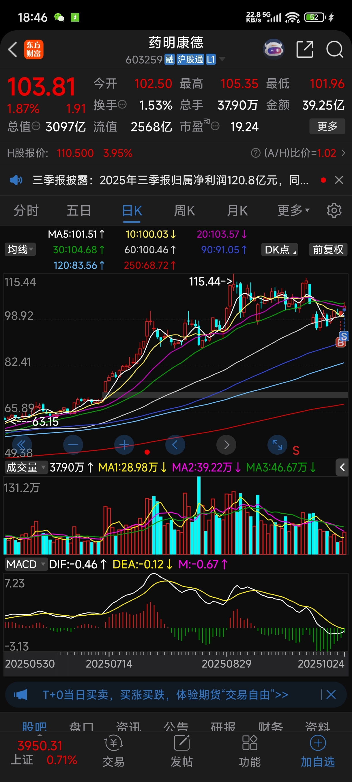 $药明康德(SH603259)$ 周五卖了,是不是卖亏了