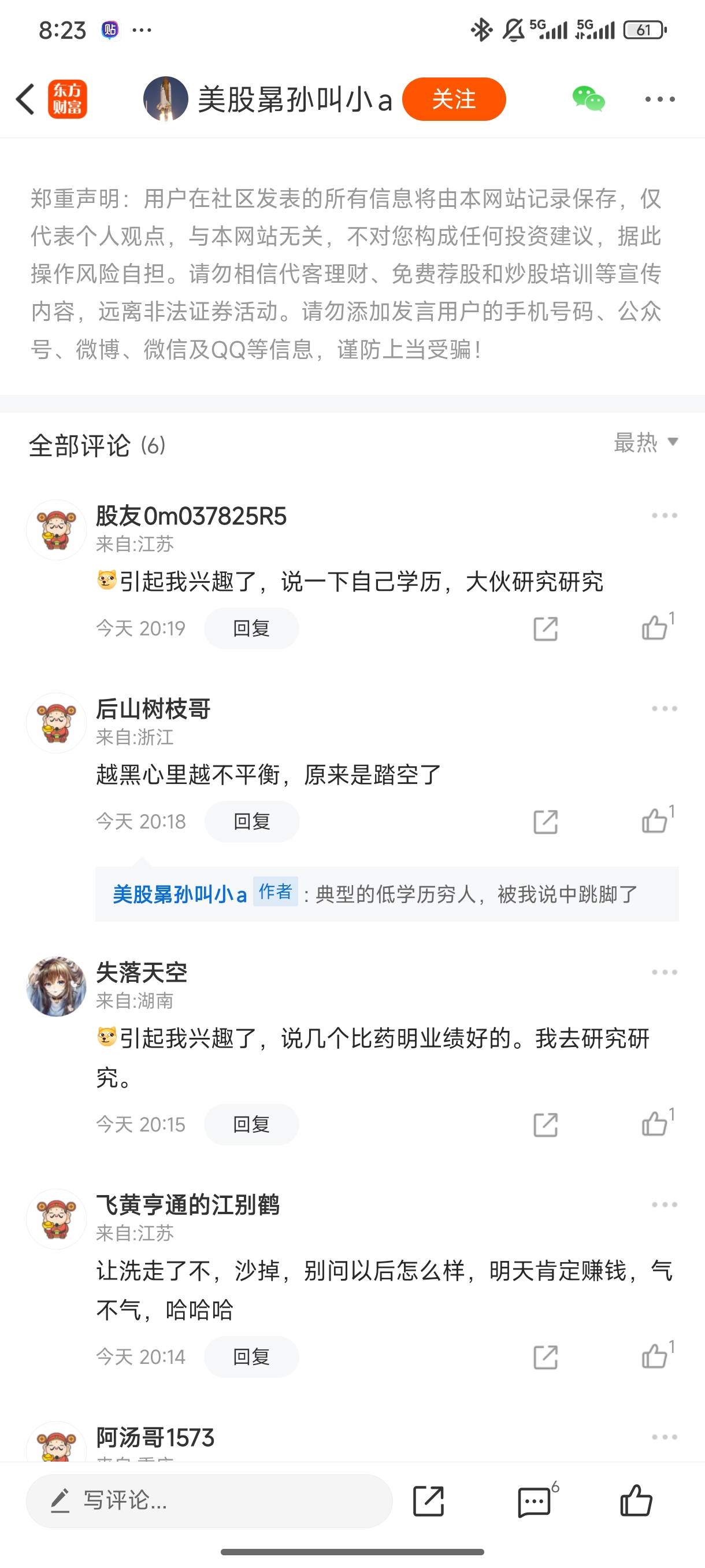 温馨提示: 1.根据《证券法》规定,禁止编造、传播虚假信息或者误导性信息,扰乱证券市场;2.用户在本社区发表的所有资料、言论等仅代表个人观点,与本网站立场无关,不对您构成任何投资建议。用户应基于自己的独立判断,自行决定证券投资并承担相应风险。《东方财富社区管理规定》