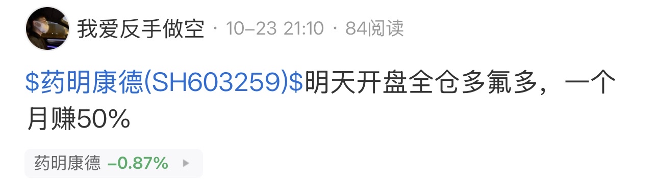 $药明康德(SH603259)$ 信我的药明不会站岗,多氟多还能吃一个板