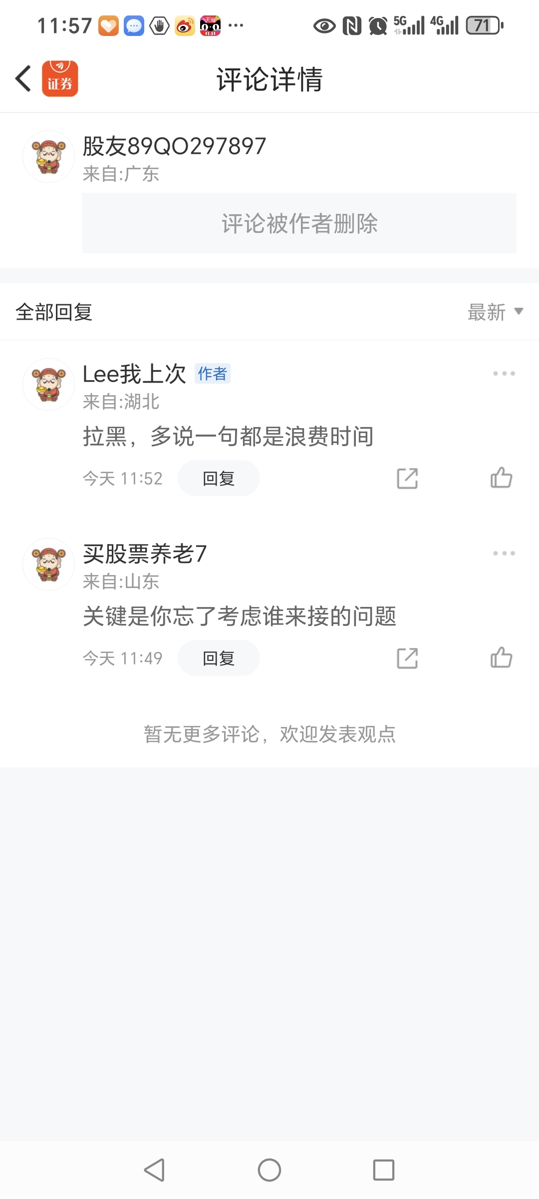 我说减持的股东们为什么不等年报出后再减持,其原因可能是趁着现在大盘4000点,股价高的时候急切地减,我说主力不会拉他卖,主力的筹码都可能没有60亿,他自己都愁卖。他就拉黑我了。哎!