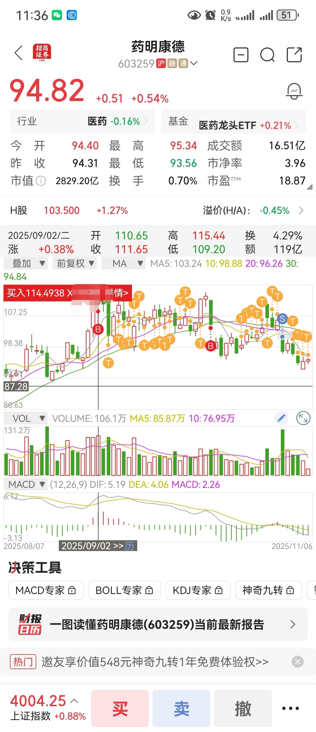 $药明康德(SH603259)$ 悲伤的故事要从这天说起,全仓高点进去的现在成本105。什么时候能回本。