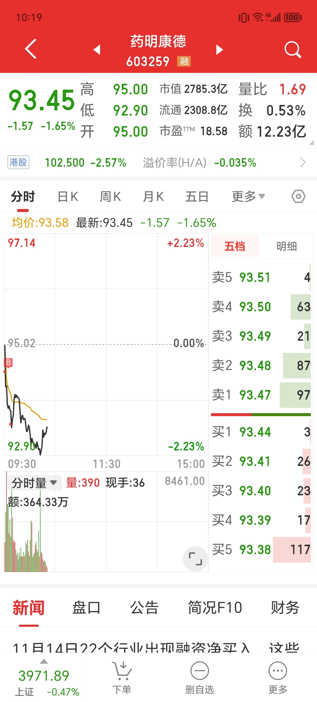 今天按操作计划在94.5和93.5成交了。我们继续观察