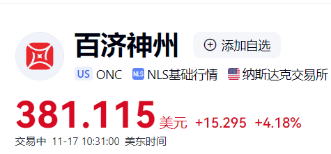 医药股领涨:百济神州大幅上涨4%,美股雅保上涨7%