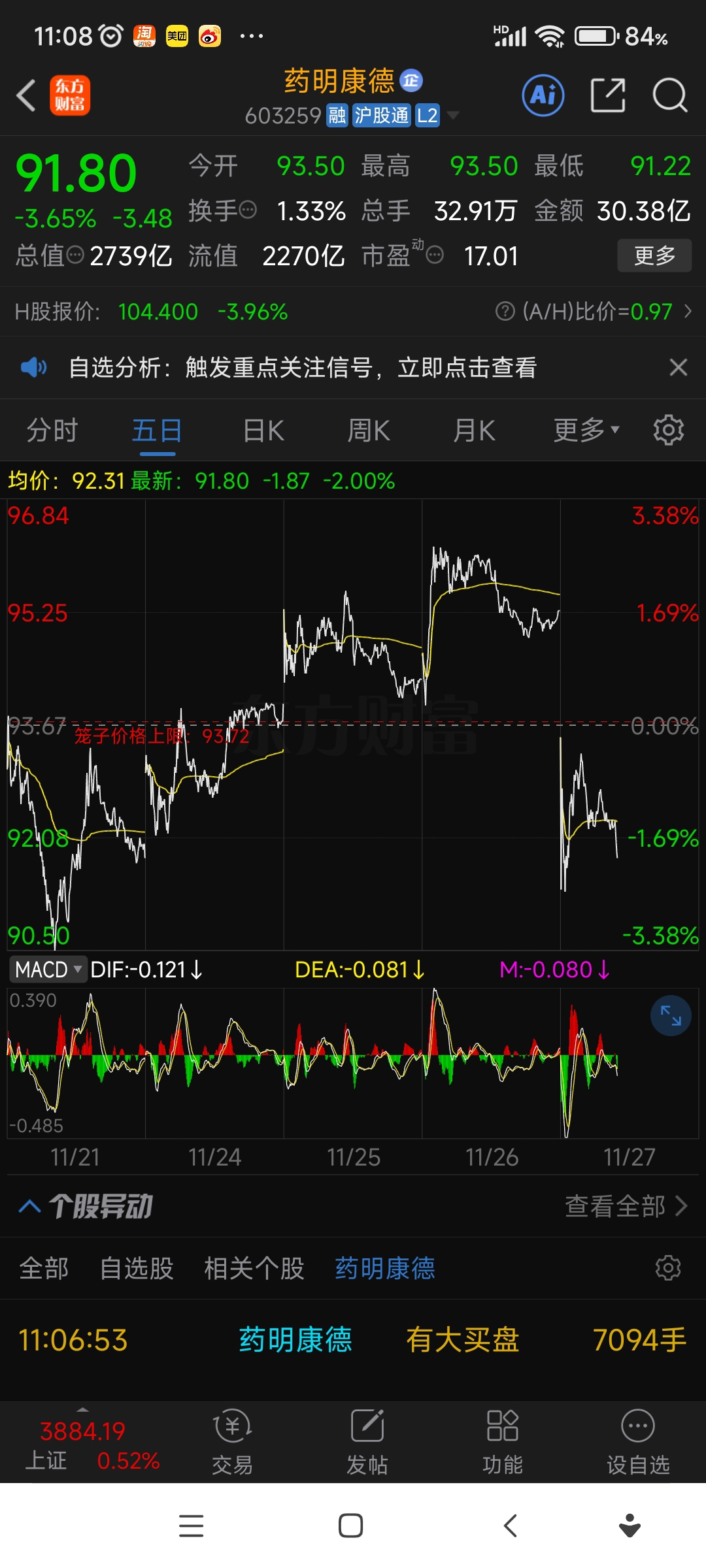 $药明康德(SH603259)$ 涨几天不够一天跌的,大野的