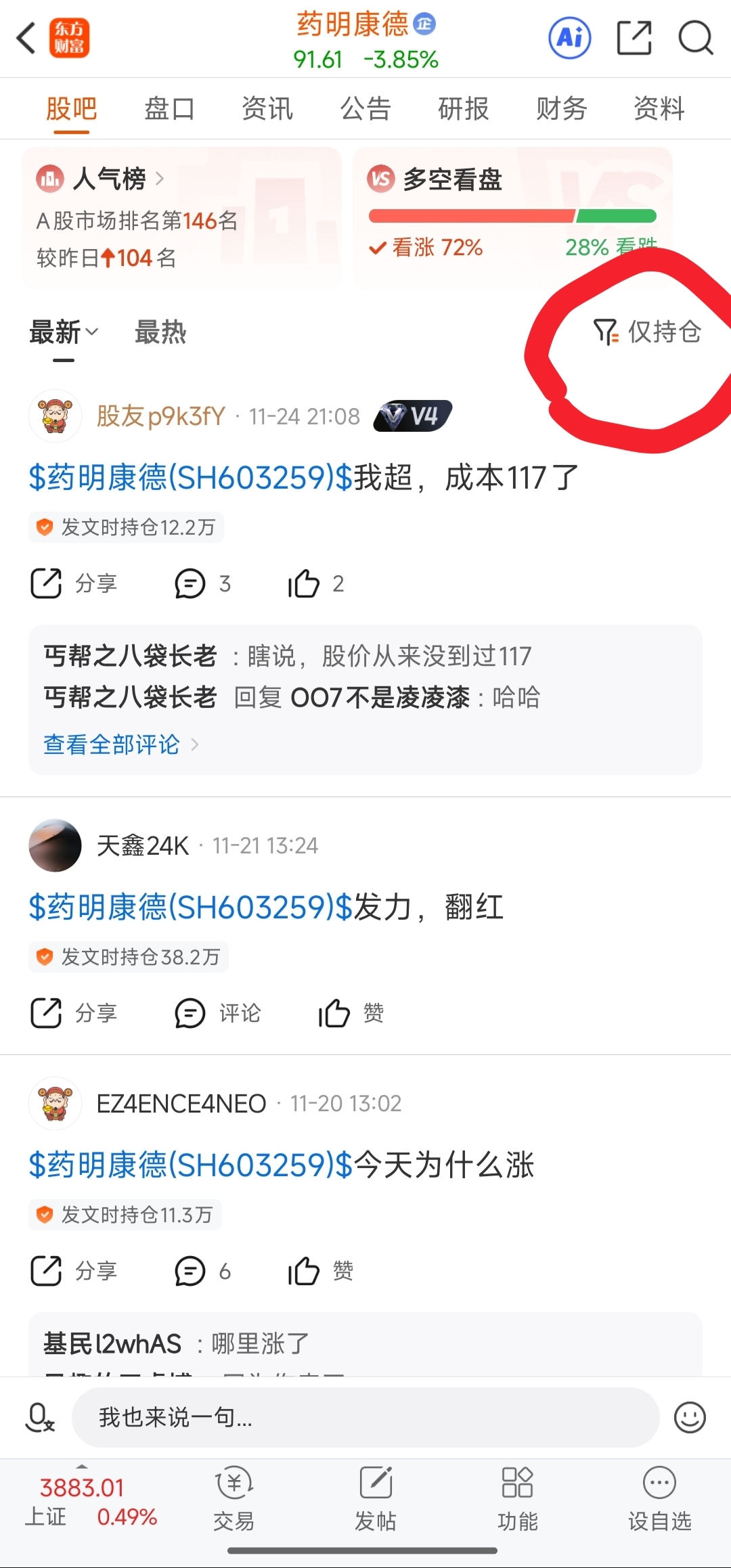 $药明康德(SH603259)$ 帖子筛选为“仅持仓”,能过滤不少249。