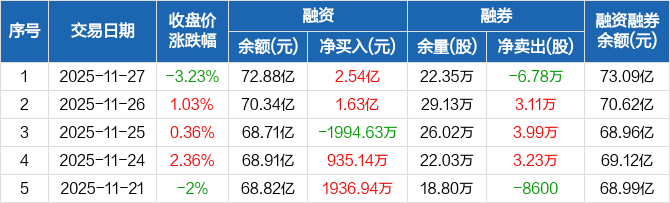 药明康德:融资净买入2.54亿元,融资余额72.88亿元(11-27)