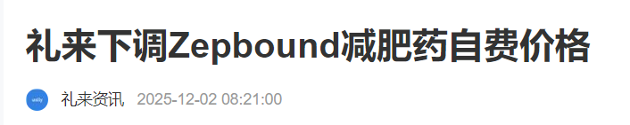 礼来公司宣布,从12月1日起,下调减肥药价格