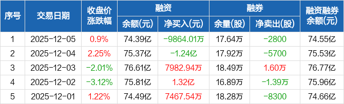 药明康德:融资净偿还9864.01万元,融资余额74.39亿元(12-05)