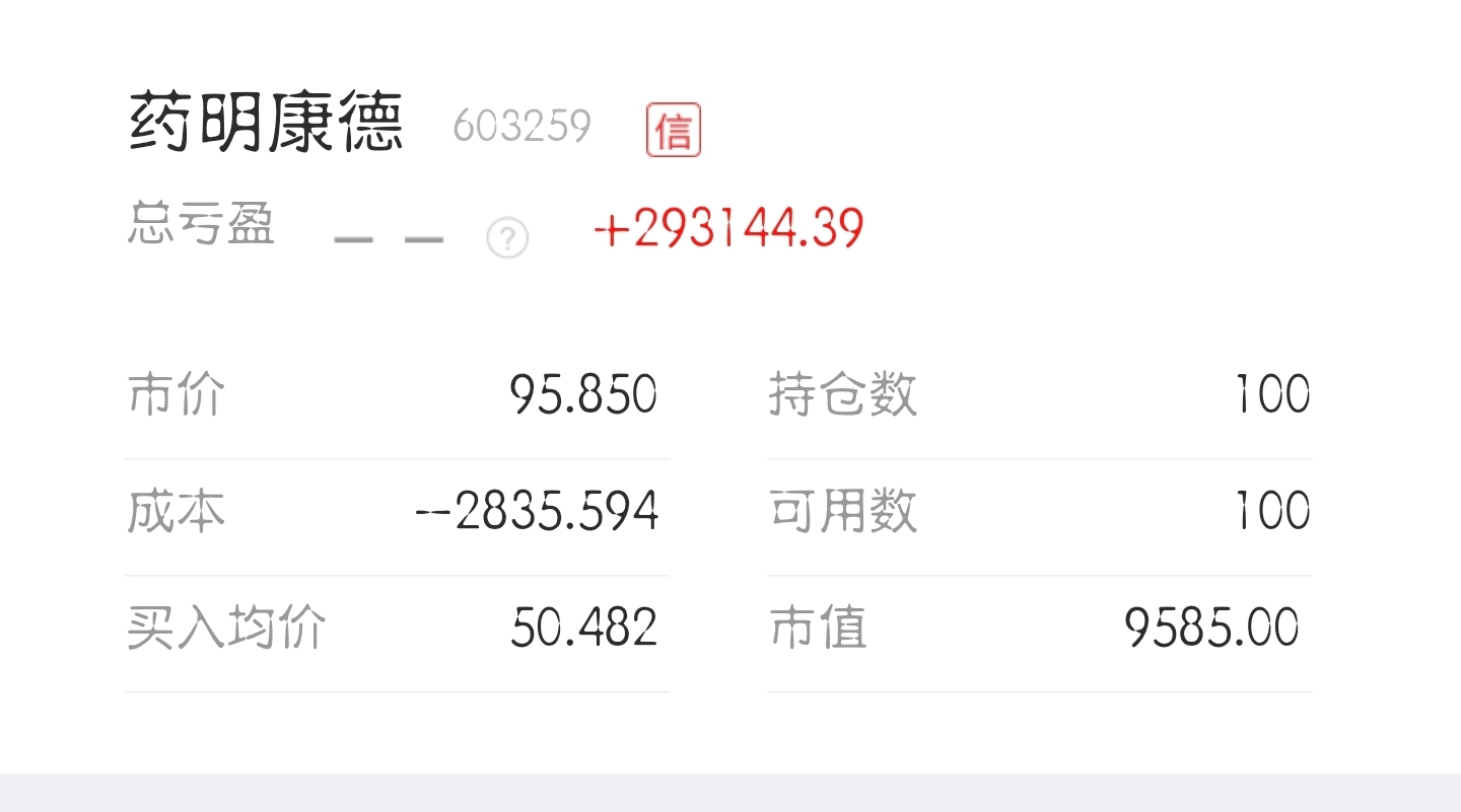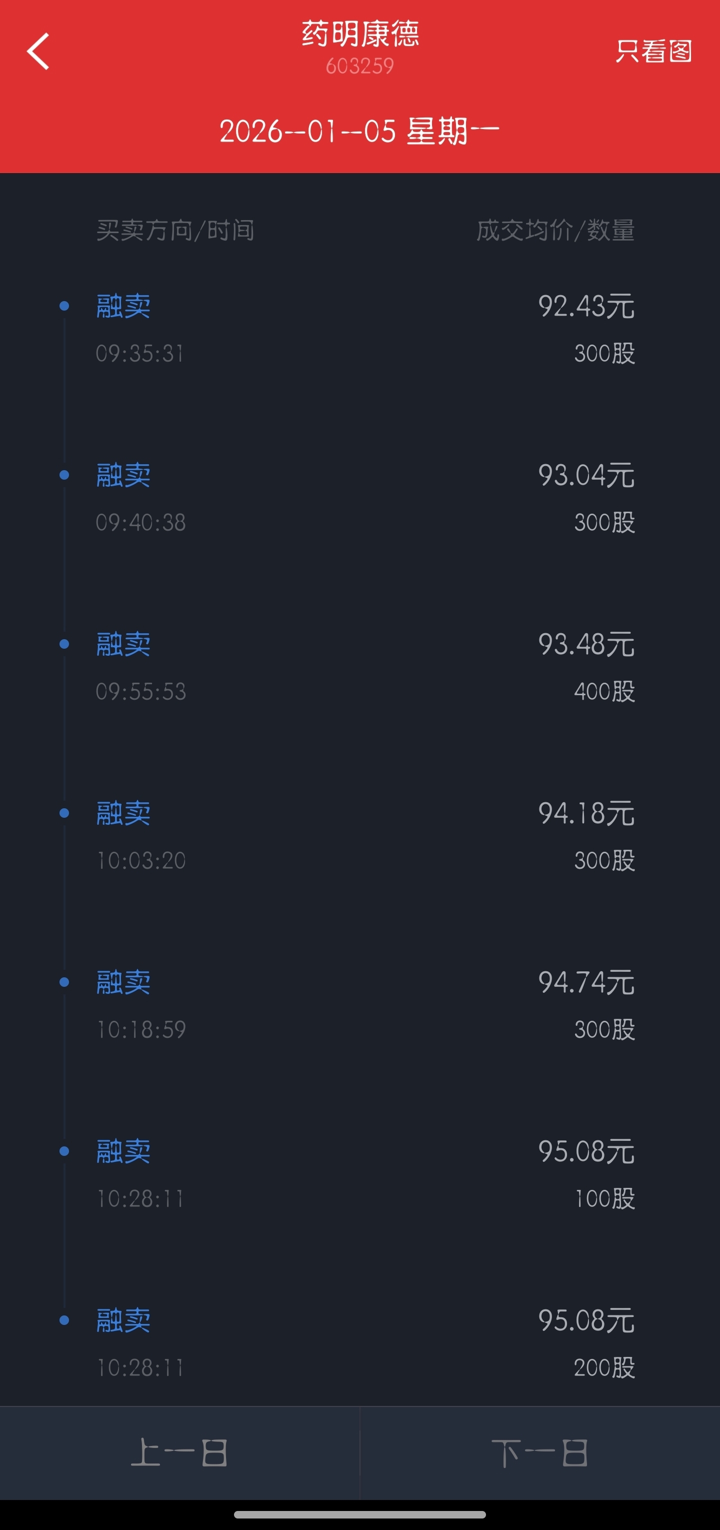 全卖飞了,药明今天真强啊。保持看空观点不变,所以继续卖了,只剩下100股,看来是赚不到药明的钱了啊,全卖飞了,但给我再来一次,我还是会卖,毕竟我坚定看空,认知决定了我赚不到继续上涨的钱,自己太菜了,只能说药明真强。后面只能看戏咯,等等看有没有买回机会