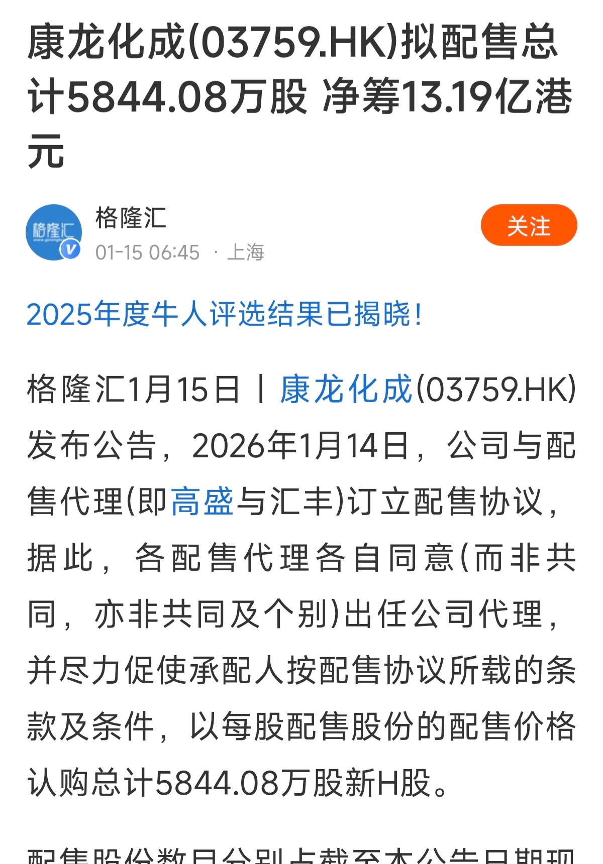 $药明康德(SH603259)$ 一堆无脑媒体把康龙化成信息套在药明康德身上 也不考虑,港股会用RMB配吗 现在一堆媒体都靠AI输出文章的 也不论证前后真实性了