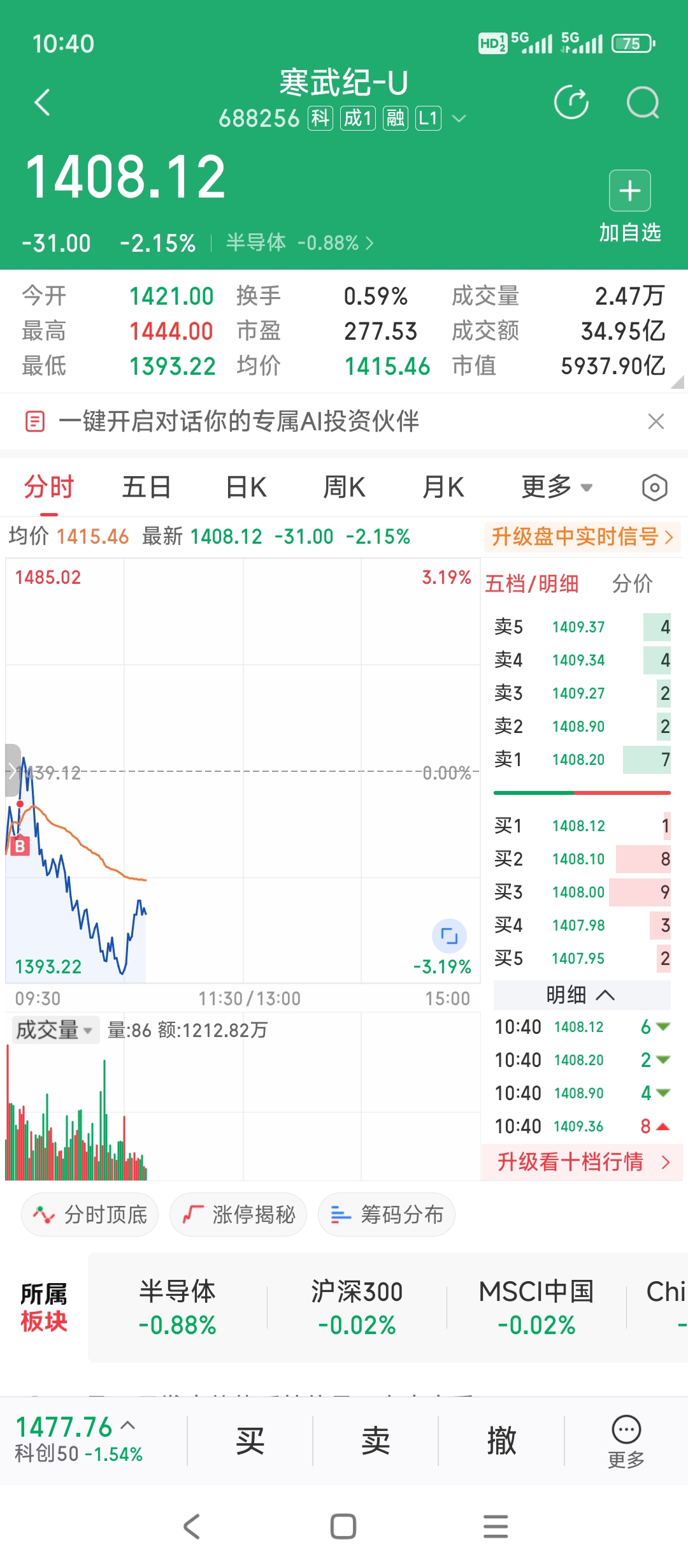 早上把本金转出后,融资进了药明,本金进了寒武纪。