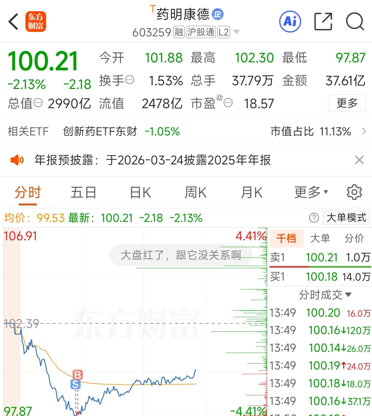 $药明康德(SH603259)$ 差点被吓跑了,卖了突然反应过来这个位置怕什么,马上又买回来了
