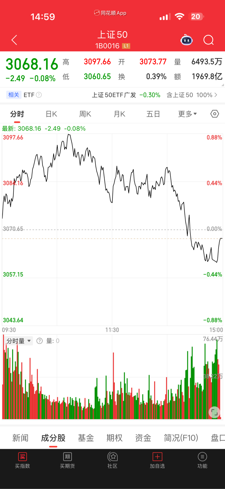 咋回事还不知道嘛,上证50带下来的,上面降温