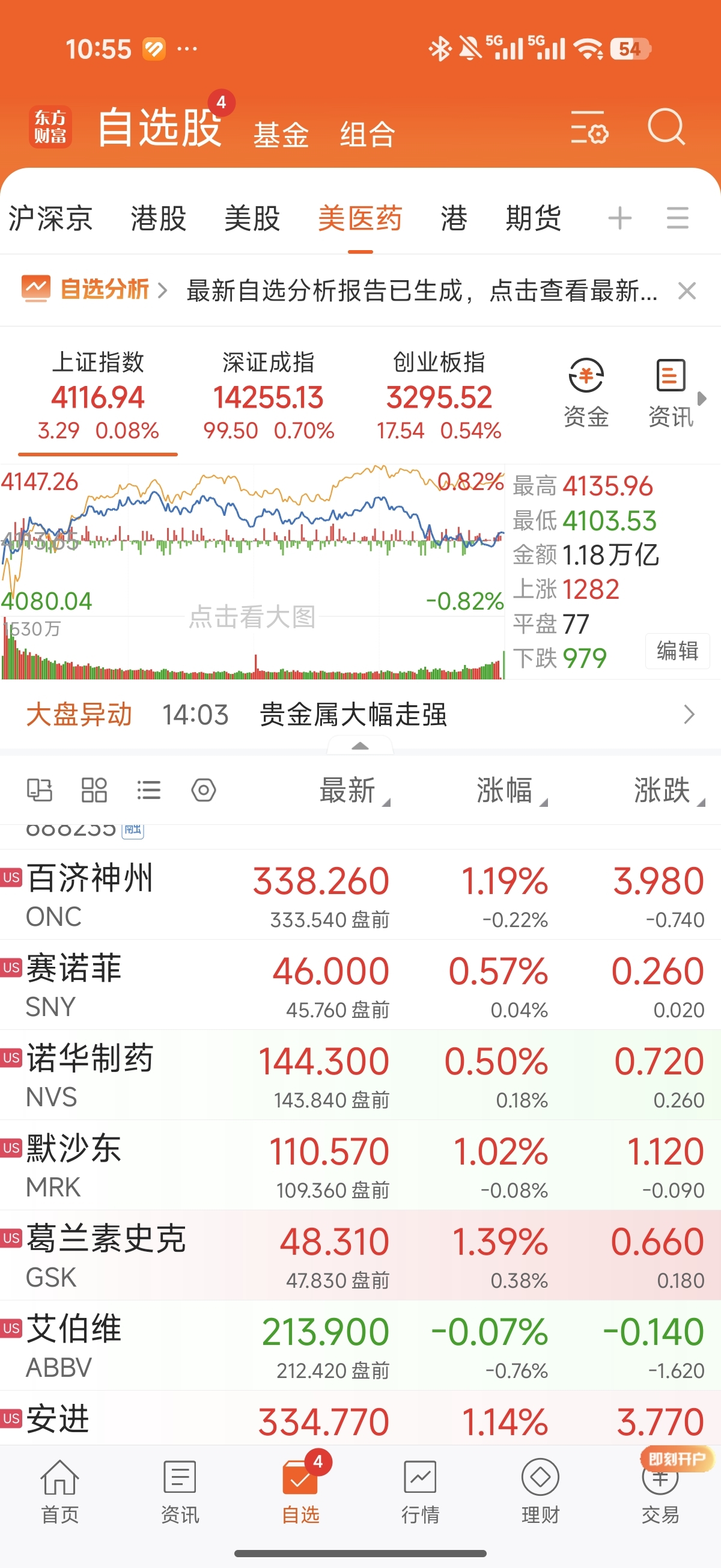 今晚重要美股医药股走势