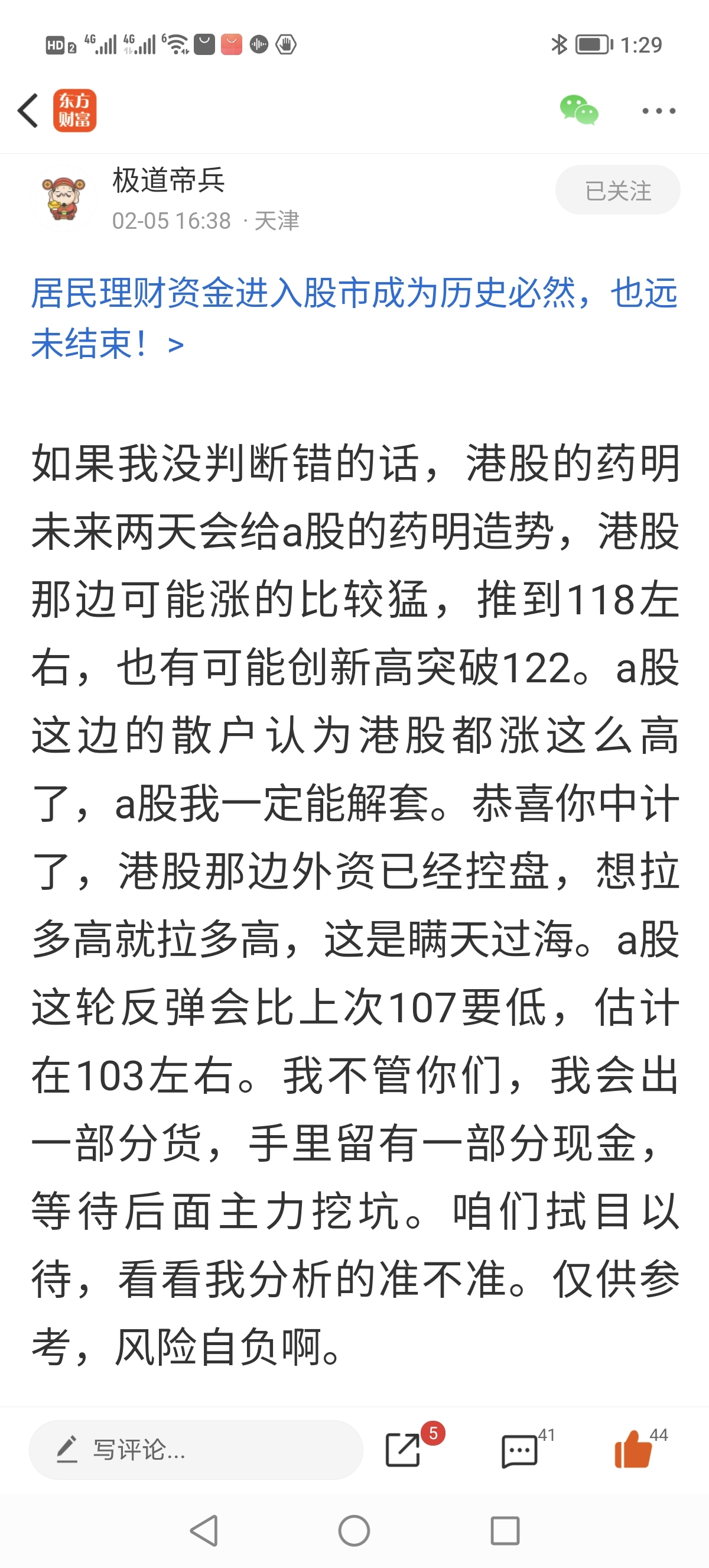温馨提示: 1.根据《证券法》规定,禁止编造、传播虚假信息或者误导性信息,扰乱证券市场;2.用户在本社区发表的所有资料、言论等仅代表个人观点,与本网站立场无关,不对您构成任何投资建议。用户应基于自己的独立判断,自行决定证券投资并承担相应风险。《东方财富社区管理规定》