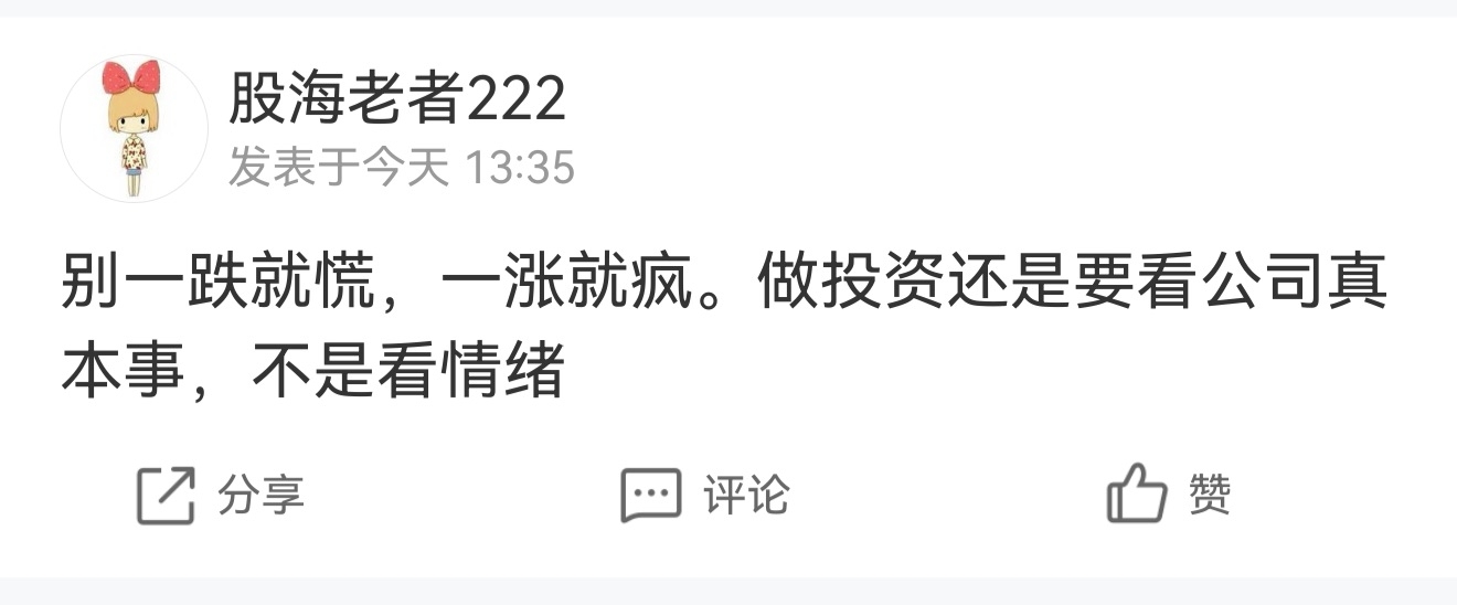 温馨提示: 1.根据《证券法》规定,禁止编造、传播虚假信息或者误导性信息,扰乱证券市场;2.用户在本社区发表的所有资料、言论等仅代表个人观点,与本网站立场无关,不对您构成任何投资建议。用户应基于自己的独立判断,自行决定证券投资并承担相应风险。《东方财富社区管理规定》
