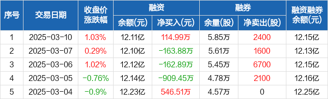 合盛硅业:融资净买入114.99万元,融资余额12.11亿元(03-10)