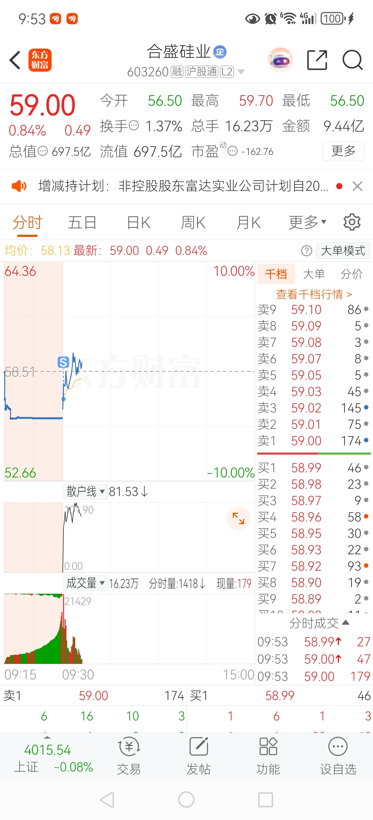 $合盛硅业(SH603260)$ 今天竞价高一点就卖了,不后悔,减持的票一律不碰,半个月后再来