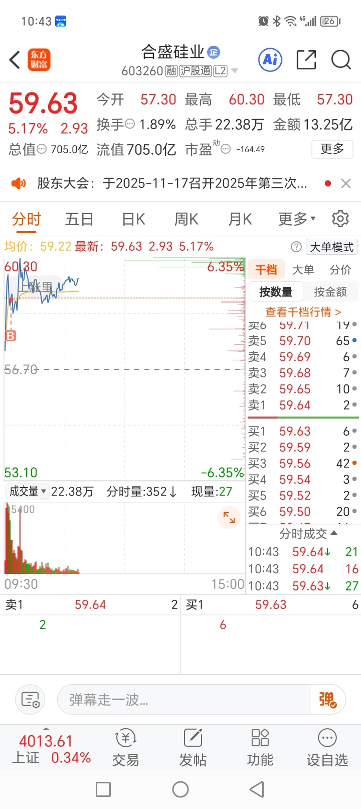 有机硅大涨6个点,你连板块都跟不上??早上买的冲动了,没看清你的市值,700亿拉
