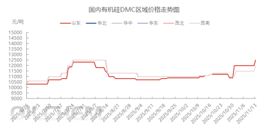 有机硅现货价格已连续多日上涨。11月17日,有机硅DMC市场主流参考报价范围在13000-13500元/吨。而在11月12日,这一产品价格为11500-12000元/吨。