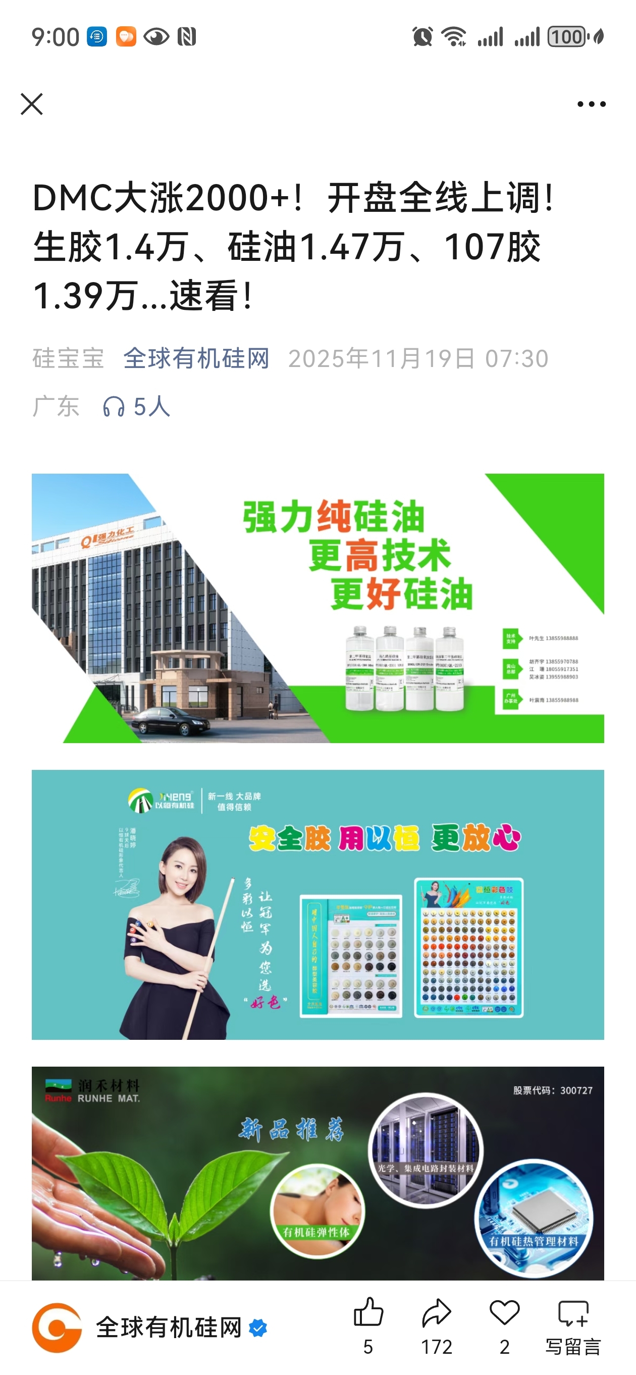 $合盛硅业(SH603260)$ 大家别吵了,看下有机硅今早价格!