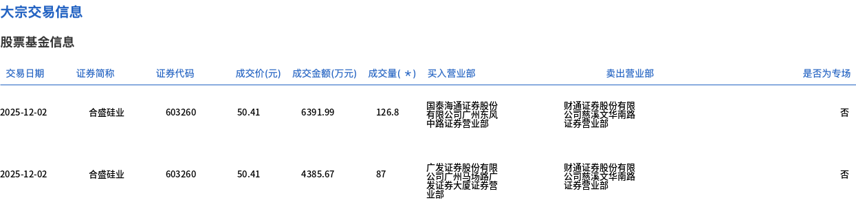 合盛硅业今日大宗交易折价成交213.8万股,成交额1.08亿元