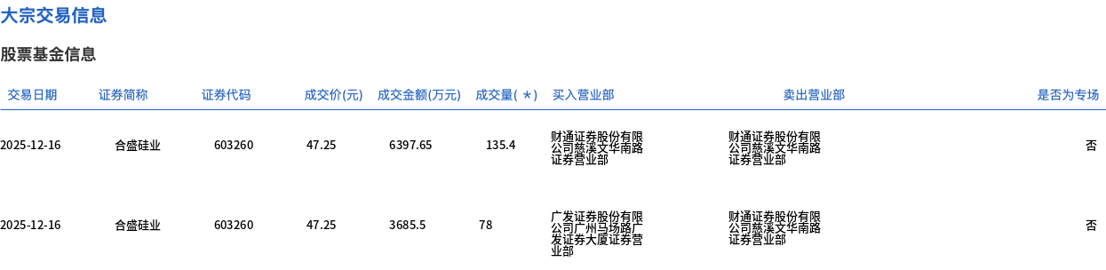 合盛硅业今日大宗交易折价成交213.4万股,成交额1.01亿元