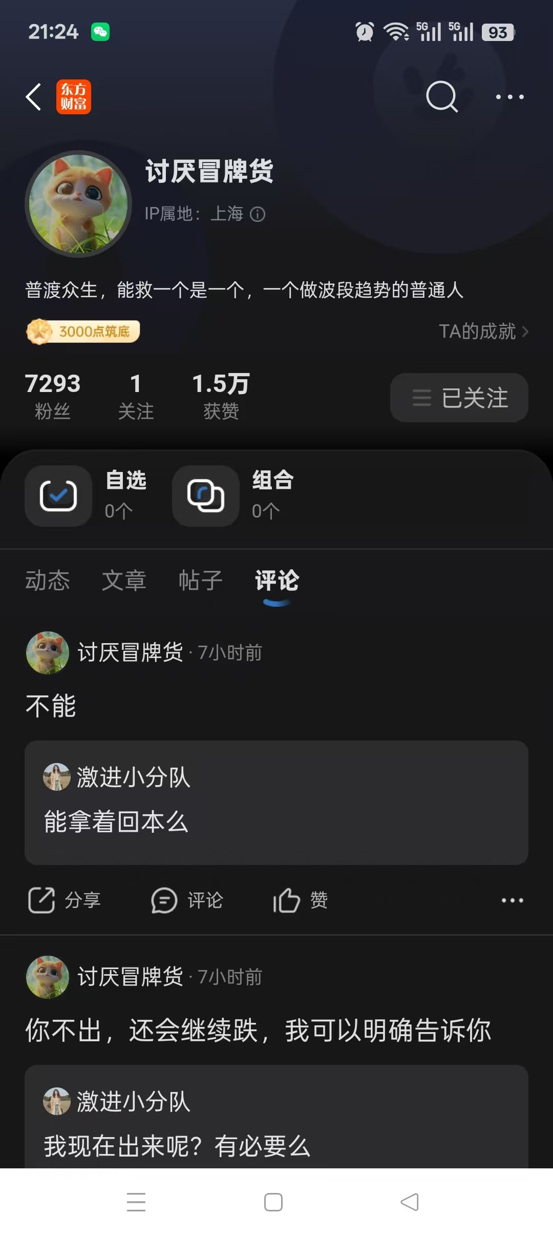 大家小心点讨厌冒牌货,28叫人满仓科创,现在只剩24了,他还在忽悠别人说轻仓