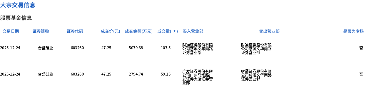 合盛硅业今日大宗交易折价成交166.65万股 成交额7874.12万元