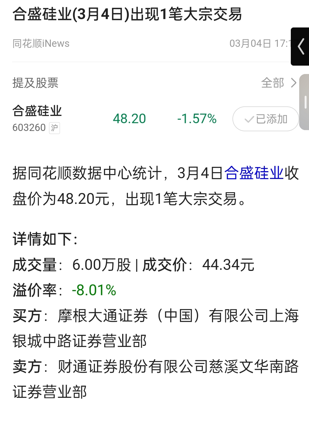 $合盛硅业(SH603260)$ 外资在捡带血筹码了。有贼