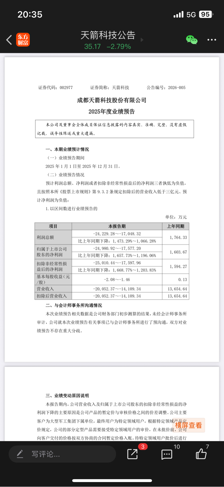 $*ST立航(SH603261)$ 天箭科技今年营收是负数,也是跟立航一样被调减营收。立航可能营收也会变成负数
