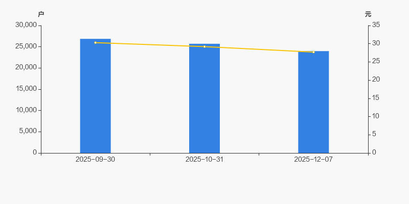 2025年9月30日至今,公司股东户数显著下降,区间跌幅为10.75%。2025年9月30日至2025年12月7日区间股价下降8.55%。