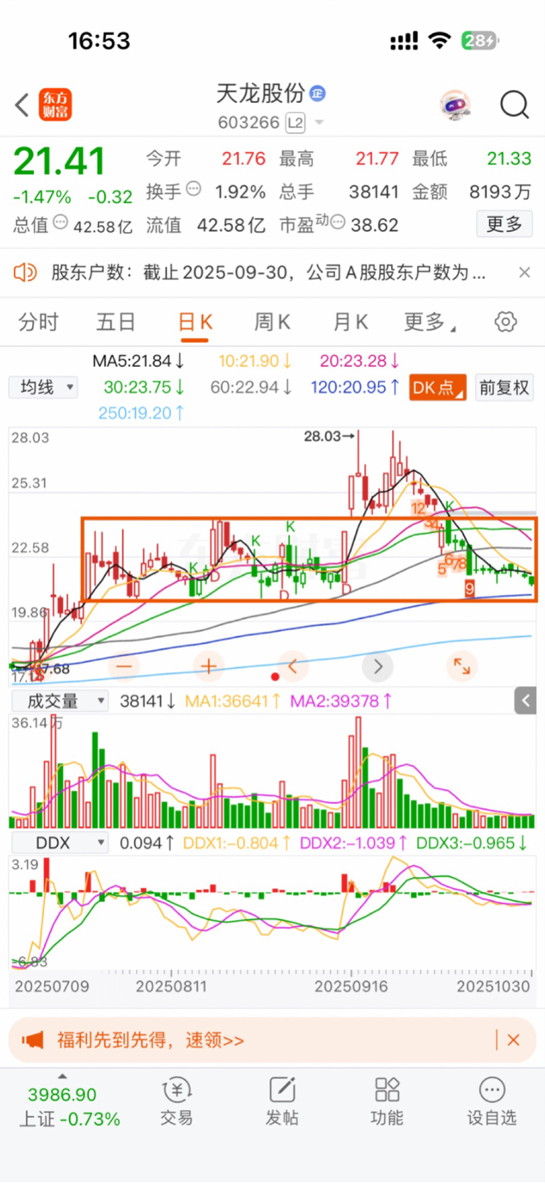 $天龙股份(SH603266)$ 最坏的结果也就是在这个箱体内震荡吧!