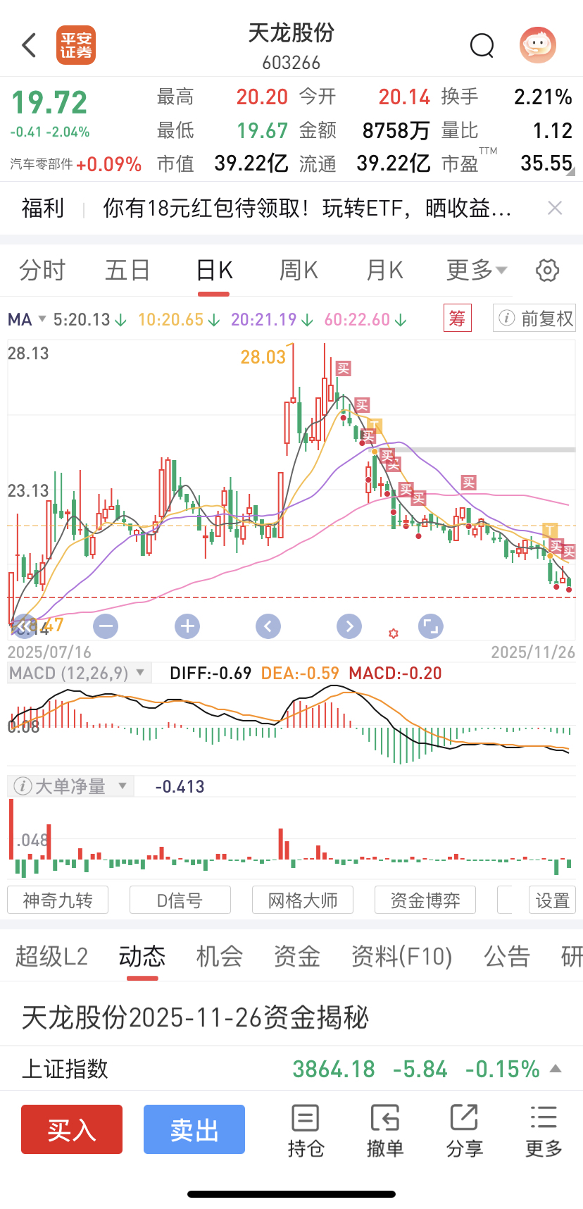 $天龙股份(SH603266)$ 不作死就不会死,是不是只剩我这一个不怕死的人了