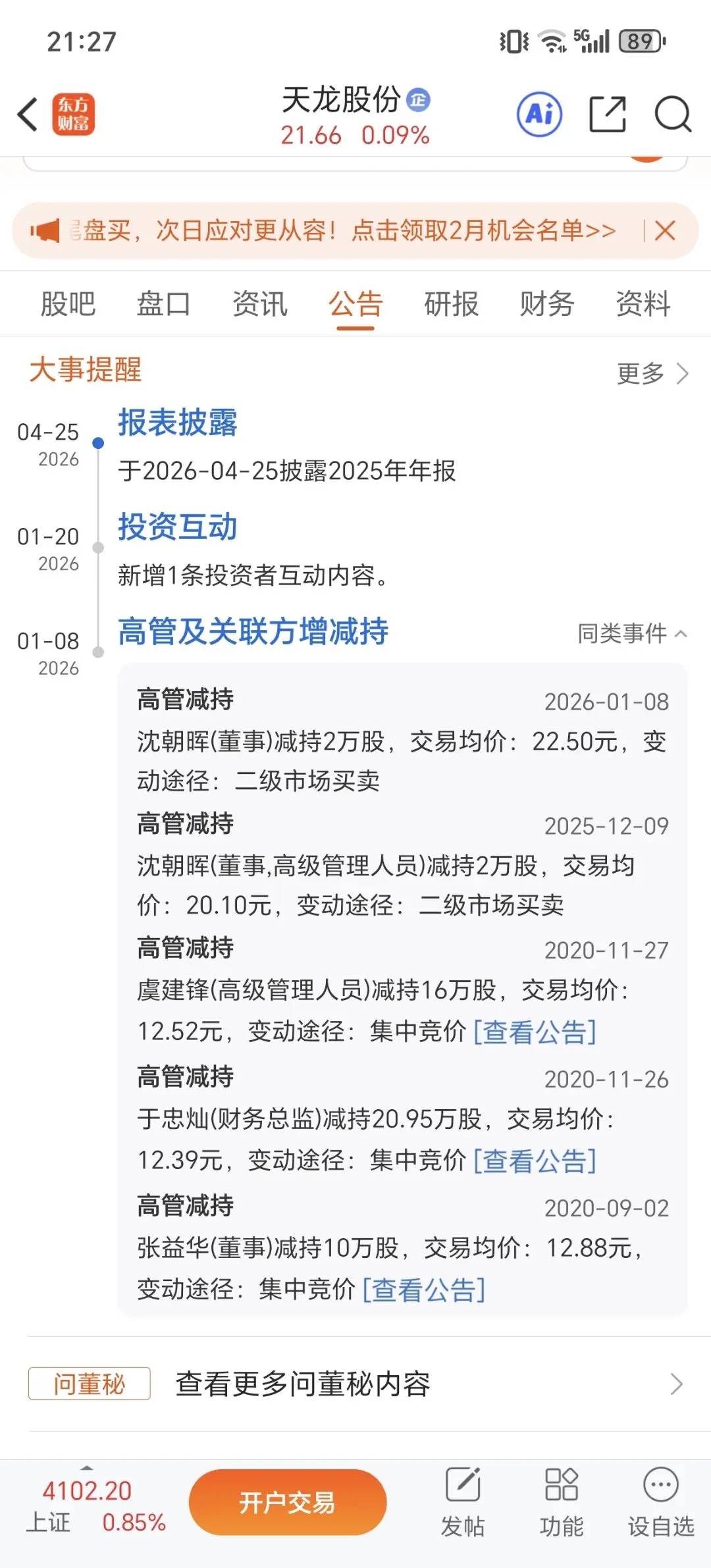 $天龙股份(SH603266)$ 愚见分析:受情绪影响明天低开是极大概率事件,问询函措辞严厉,里面有两点我觉得比较关键。1.公司为什么能3亿多买之前B轮估值6.5亿 2.之前估股价借着收购消息拉升期间高管减持,是否有内幕交易。 关于1就让公司自己解释吧我们肯定说不清,关于2,我觉得可以自证清白,高点9/17 28.03,减持价格20.1和22.5各2W股,无论从减持价格和减持规模实在看不出怎么内幕了