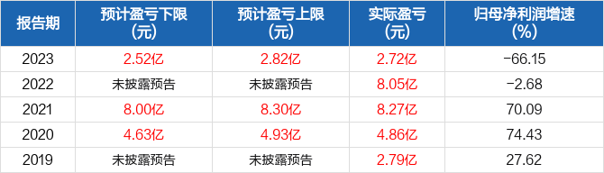 近5年归母净利润预测情况