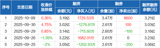 鸿远电子:融资净买入1729.53万元,融资余额3.19亿元(10-09)