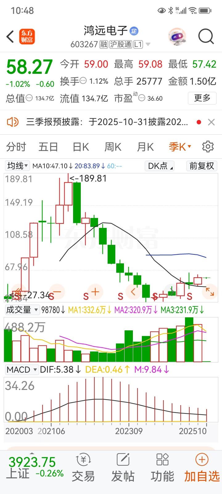 $鸿远电子(SH603267)$ 啥玩意?到过189