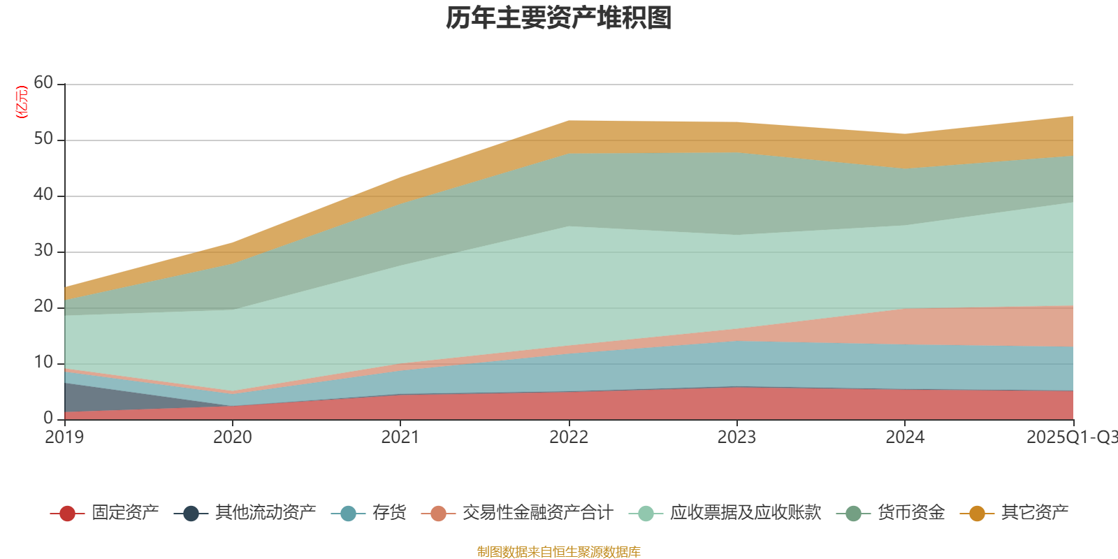 资产重大变化方面,截至2025年三季度末,公司应收票据及应收账款较上年末增加23.88%,占公司总资产比重上升4.85个百分点;货币资金较上年末减少17.79%,占公司总资产比重下降4.48个百分点;存货较上年末减少1.89%,占公司总资产比重下降1.2个百分点;固定资产较上年末减少4.93%,占公司总资产比重下降1.09个百分点。