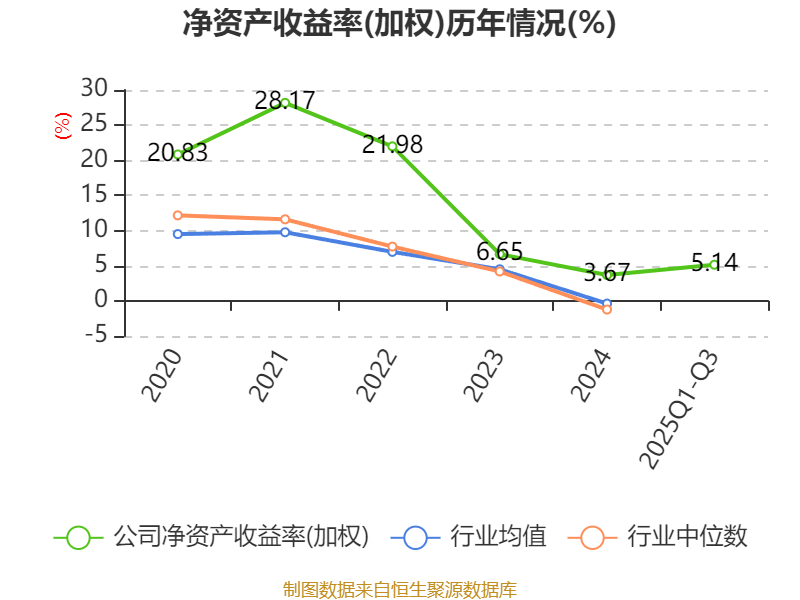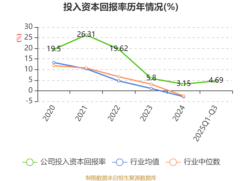 盈利能力方面, 2025年前三季度公司加权平均净资产收益率为5.14%,同比上升2.1个百分点。公司2025年前三季度投入资本回报率为4.69%,较上年同期上升2.08个百分点。