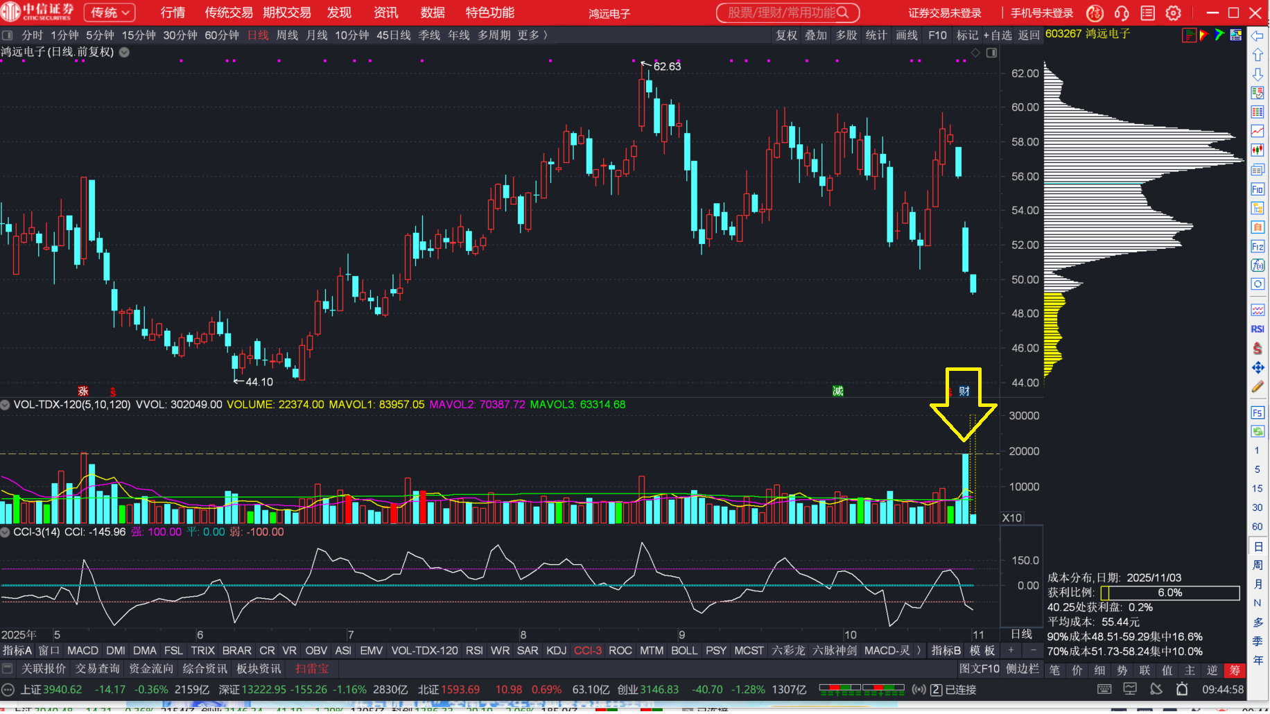 鸿远电子的前三季度业绩杠杠的--只是第三季度不太理想,【鸿远本身没问题】。到目前位置还有量--还得砸一波,没量了就差不多了!!