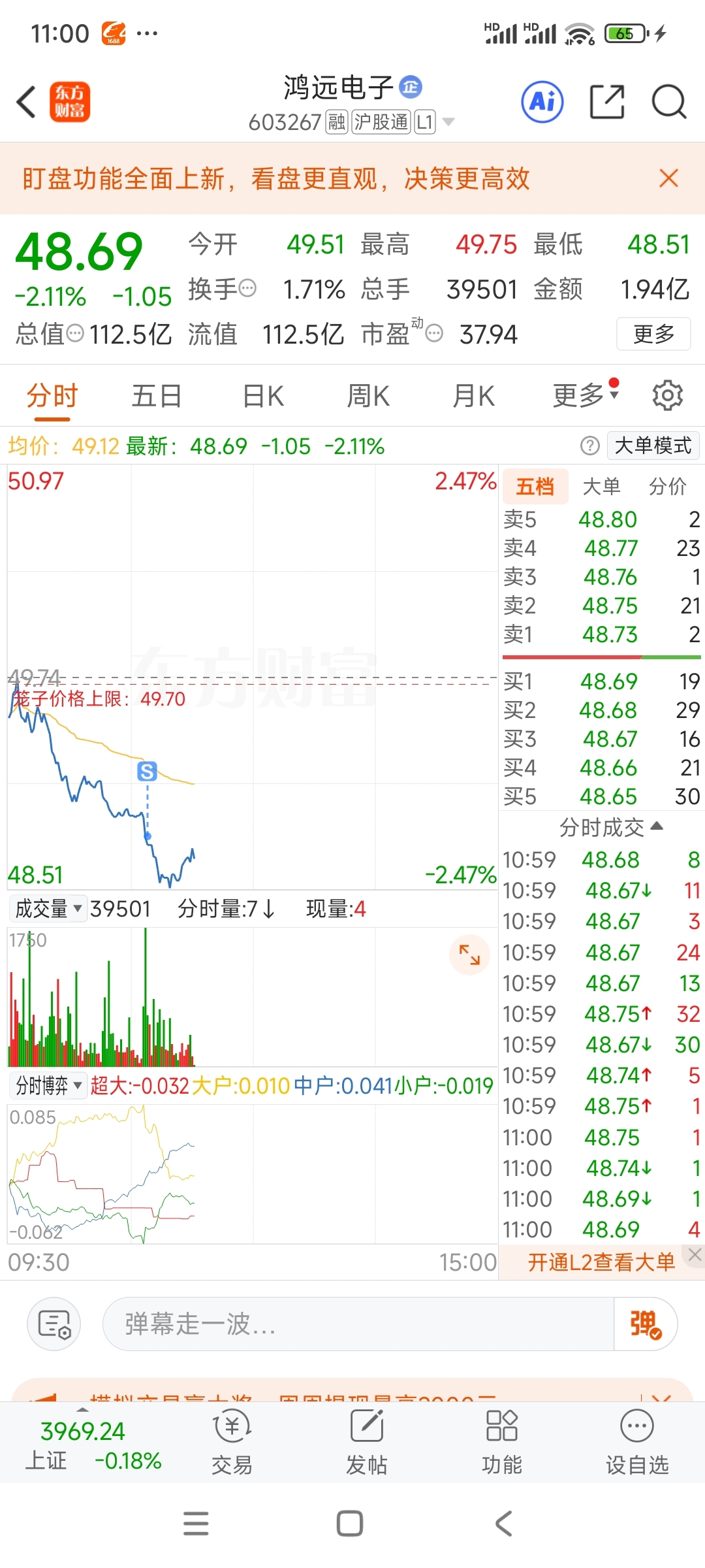 $鸿远电子(SH603267)$ 亏了十几个点,割肉走了