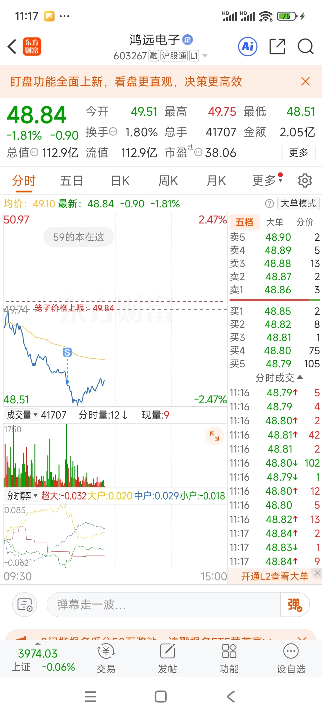 $鸿远电子(SH603267)$ 好难过,只要我不想让他涨