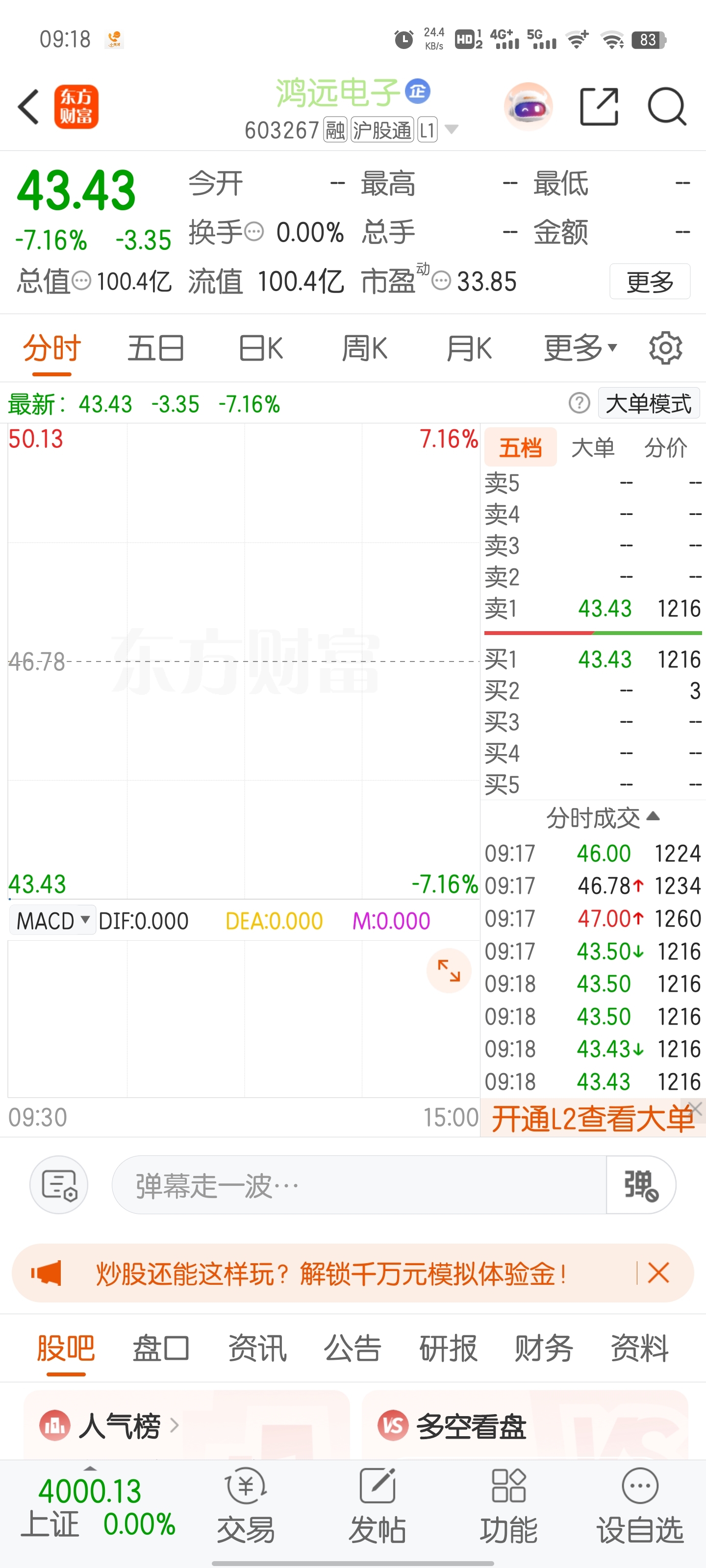 $鸿远电子(SH603267)$ 彻底原地爆炸了!