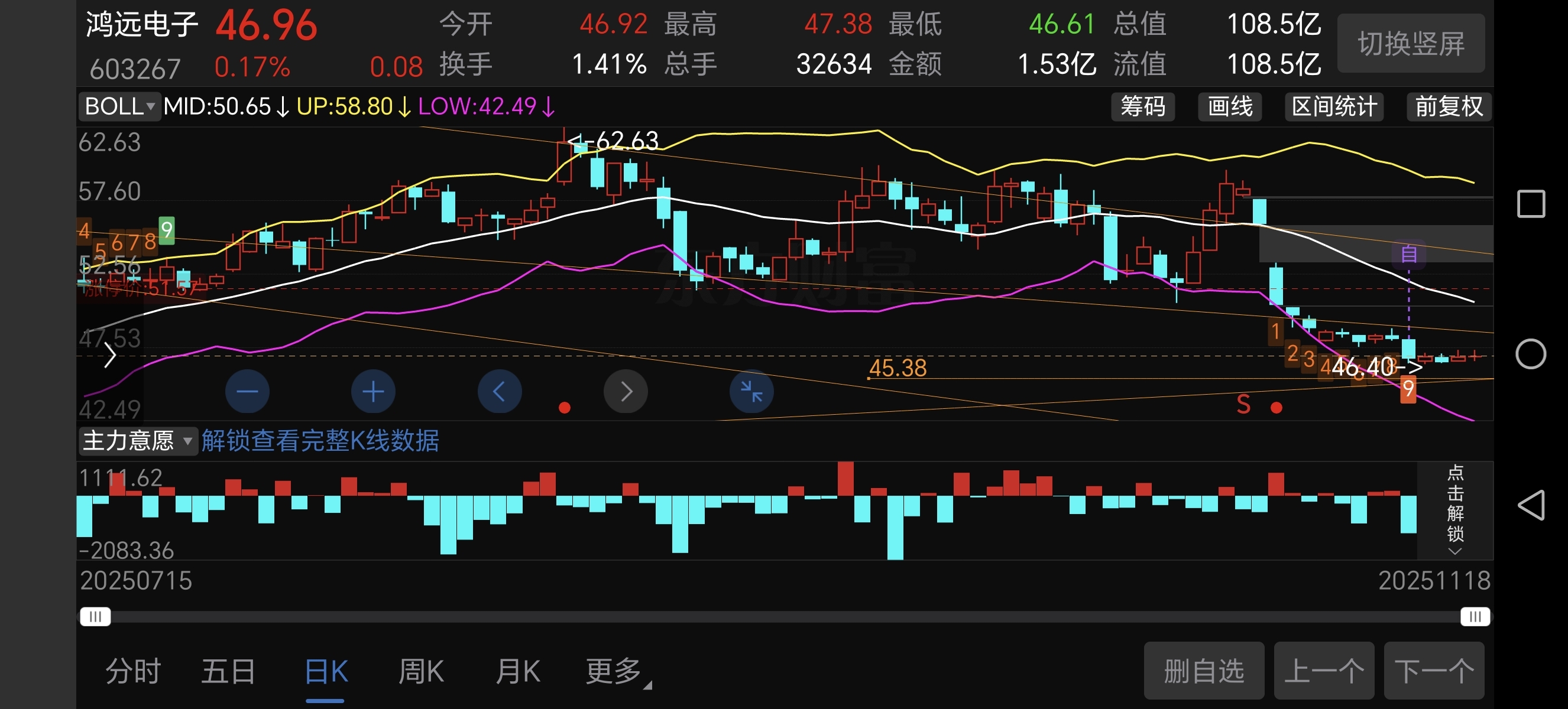 $鸿远电子(SH603267)$ 此股明天向上站上47.85上方且温和放量可以继续持有,放巨量就是诱多,如若回调45.38继续加仓可能性比较小,一定看收盘时价位。上攻可能性比较大,注意控制风险
