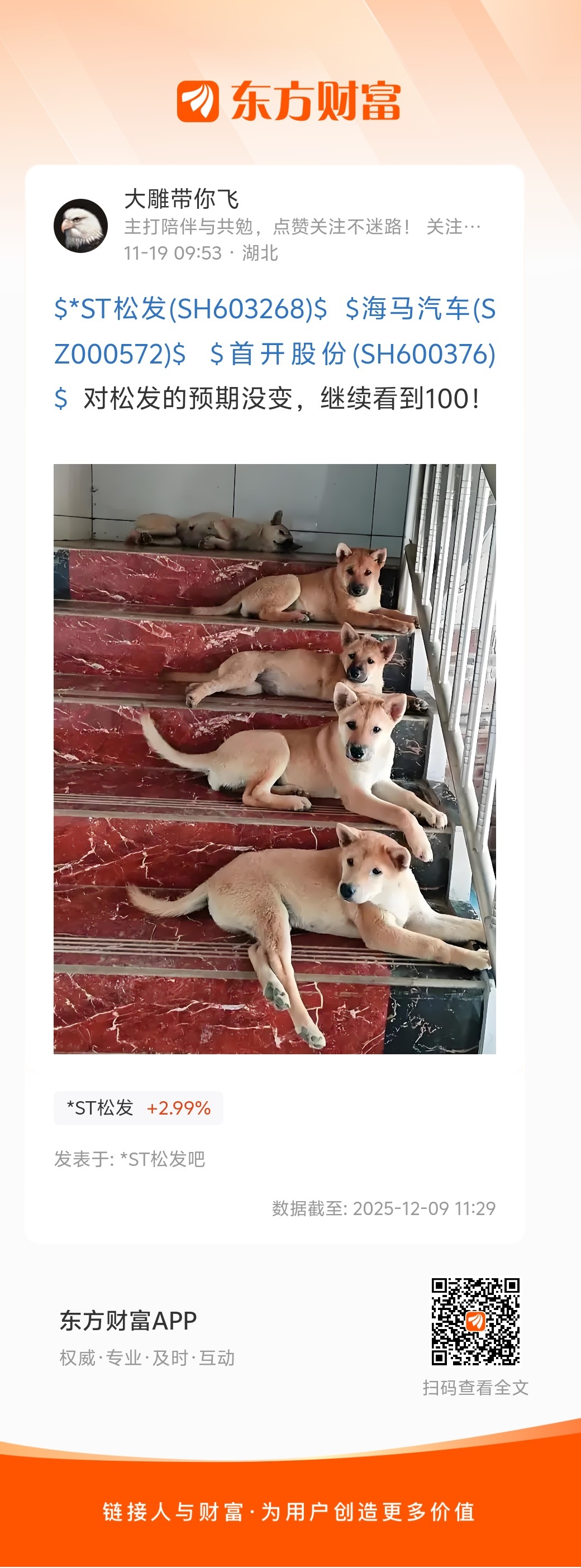 $*ST松发(SH603268)$ $实达集团(SH600734)$ $合富中国(SH603122)$ 还有多少雕粉在等待松发100呢?感谢关注