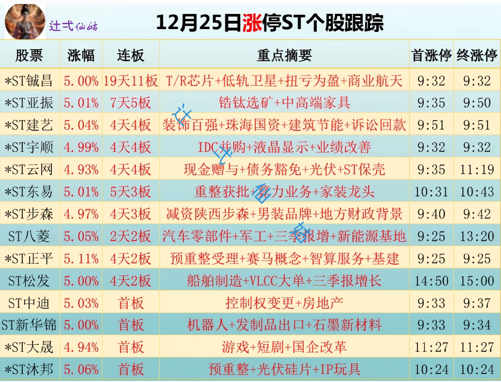 今日涨停st个股小红花佩戴情况10以后: