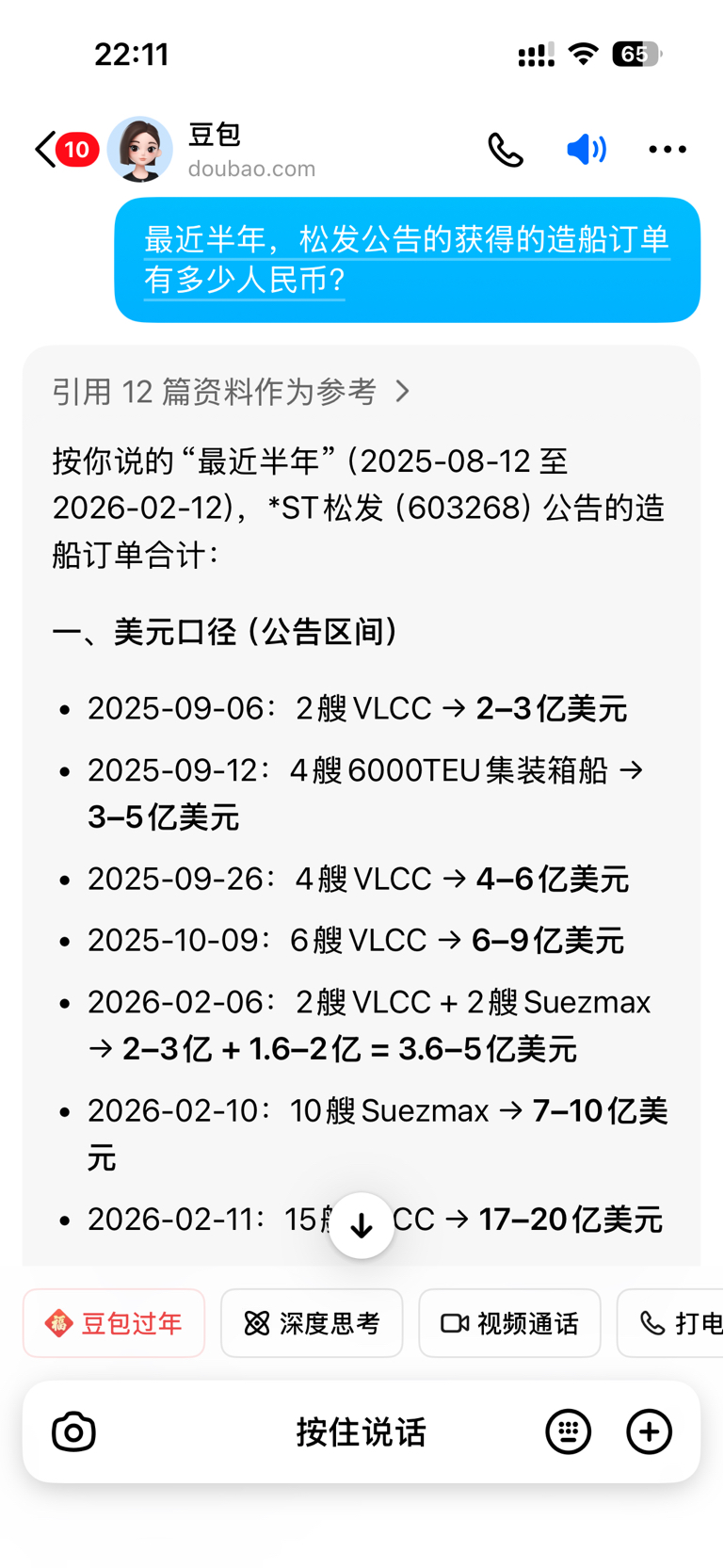 $*ST松发(SH603268)$ 最近半年的造船营收明牌公告的都已经500亿左右了。 如果不是st 机构布局不了 这个股不得冲到2000亿市值?便宜了 个人投资者。 且拿且珍惜。 越临近一季报节点 营收预增跟业绩预增包大爆发的