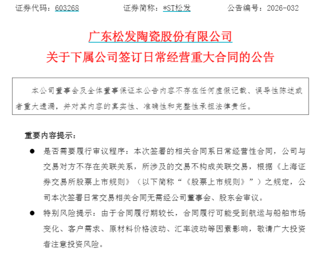 2026年以来,*ST松发大额造船订单不断。