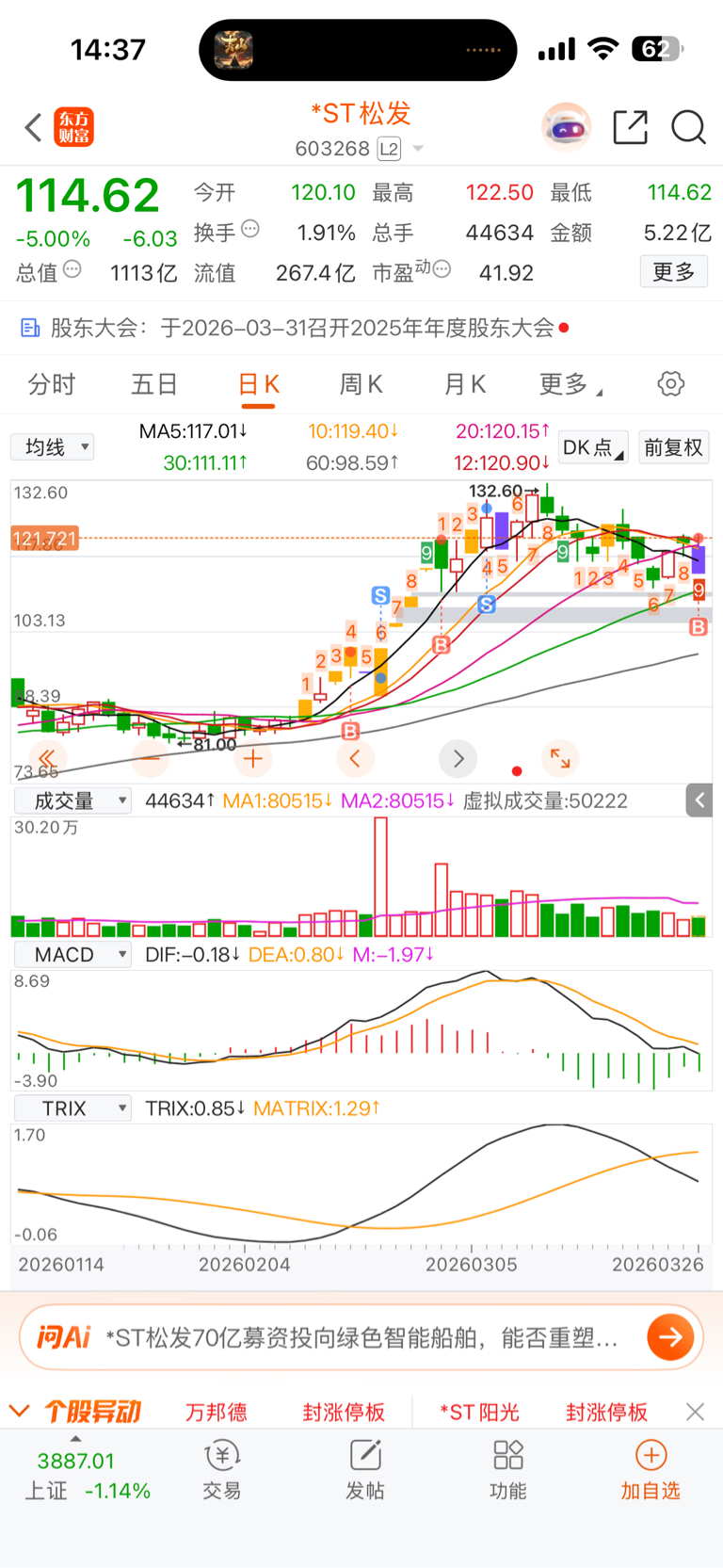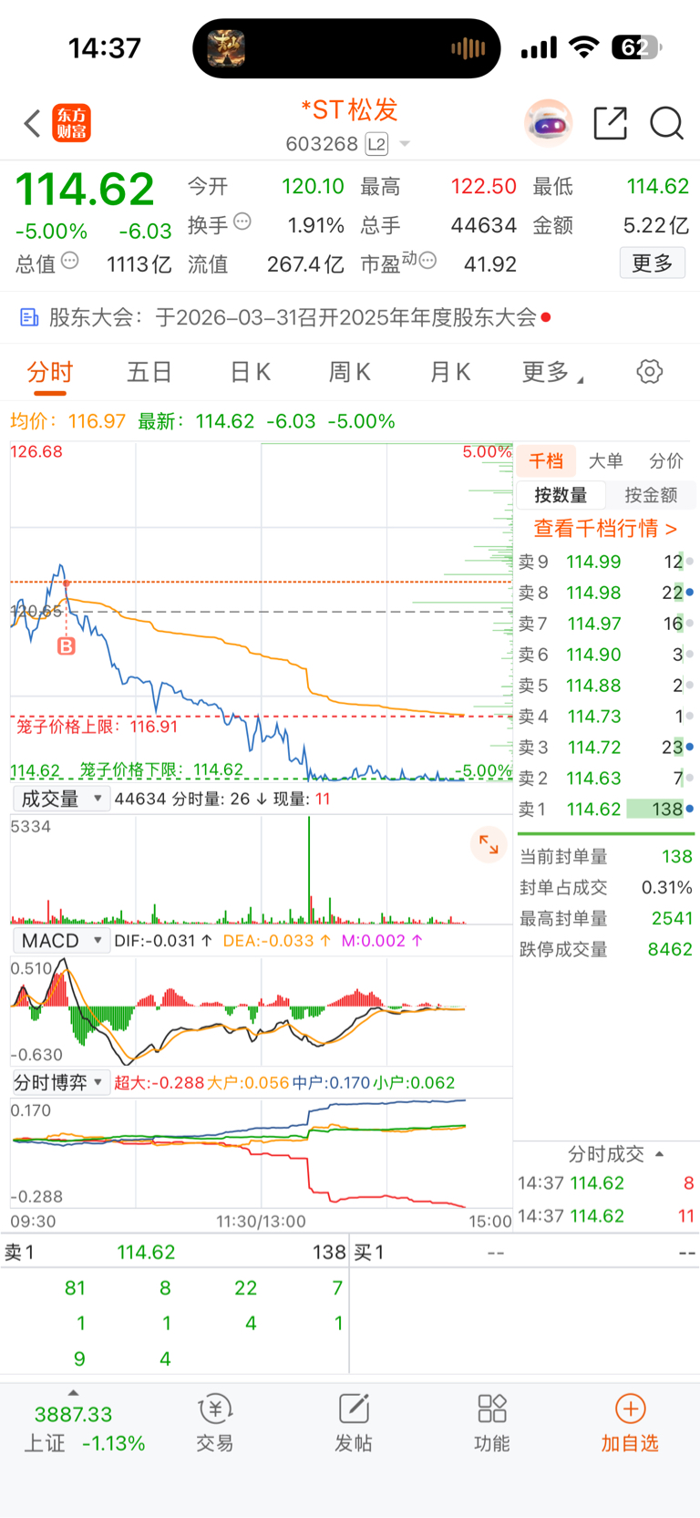 $*ST松发(SH603268)$ 呦呦呦,快看,跌停了